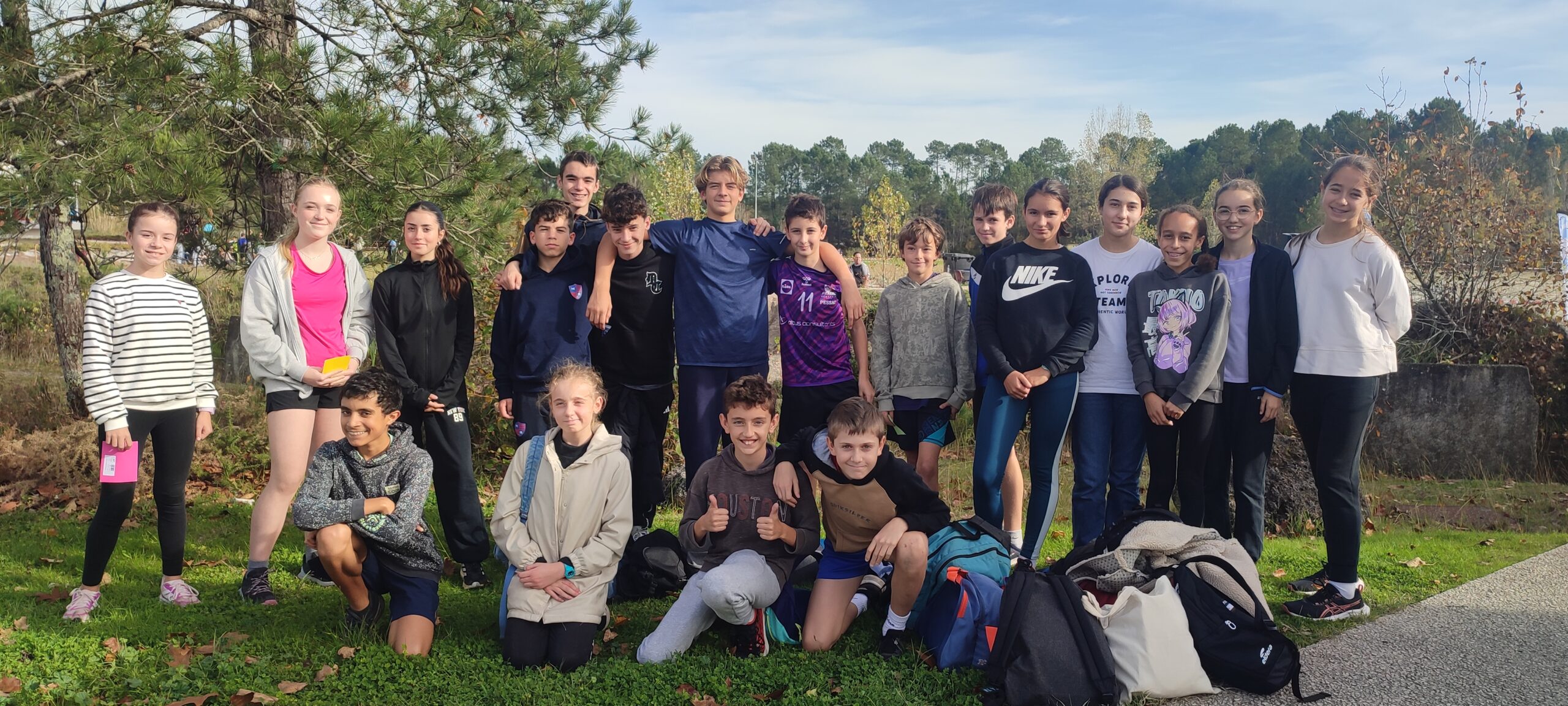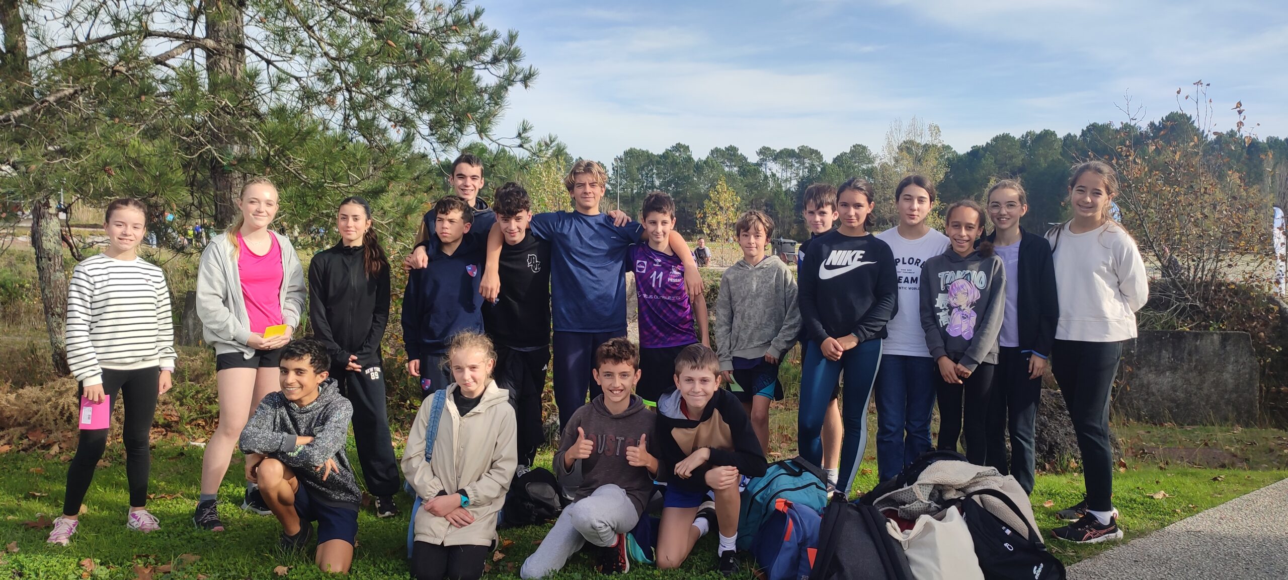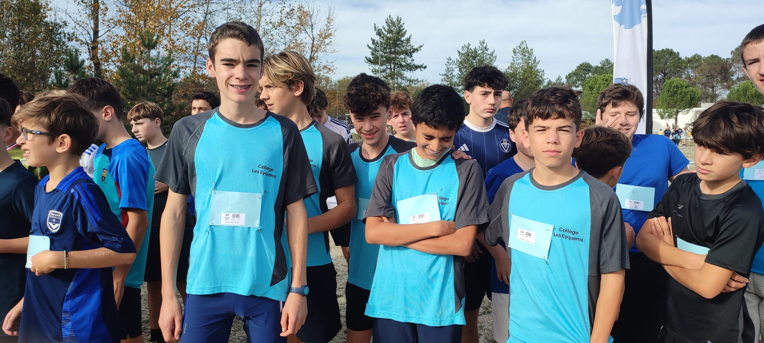 Aujourd’hui à la plaine des sports de Martignas, vingt élèves du collège sont allés représenter les Eyquems au cross district UNSS. Ils avaient brillé au cross du collège, ils n’ont pas démérité cet après-midi parmi les élèves des collèges de Martignas, St Médard-en-Jalles, St Jean d’Illac et Mérignac ; ils remportent 3 médailles d’or en individuel ainsi qu’une une 3e et 2e place par équipe.